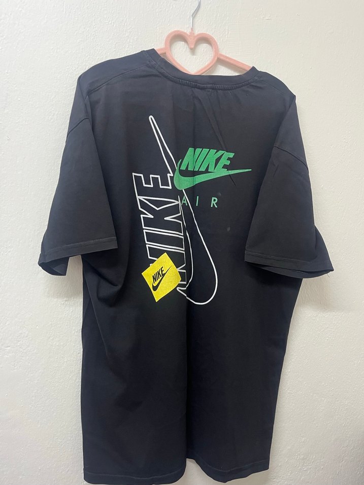 Nike siyah erkek spor tişörtü, kısa kollu ve bol kesim. Baskılı logo ve cırt cırt detaylı, rahat ve şık bir tasarım.