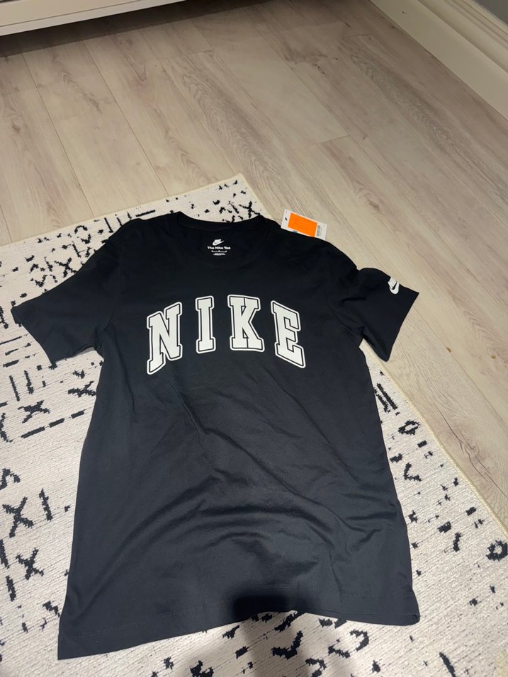 Nike siyah renkli, kısa kollu erkek tişörtü. Bol kesim, baskılı NIKE yazısı ve yuvarlak yaka ile rahat kullanım sağlar. Yumuşak sentetik kumaştan üretilmiştir. Faturalı Orjinal S Beden
