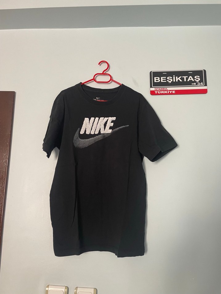 Nike marka siyah erkek tişörtü, kısa kollu ve rahat kesimdir. Sentetik kumaştan üretilmiş, baskılı logo bulunur. Spor ve gündelik kullanım için uygundur. Orjinaldir