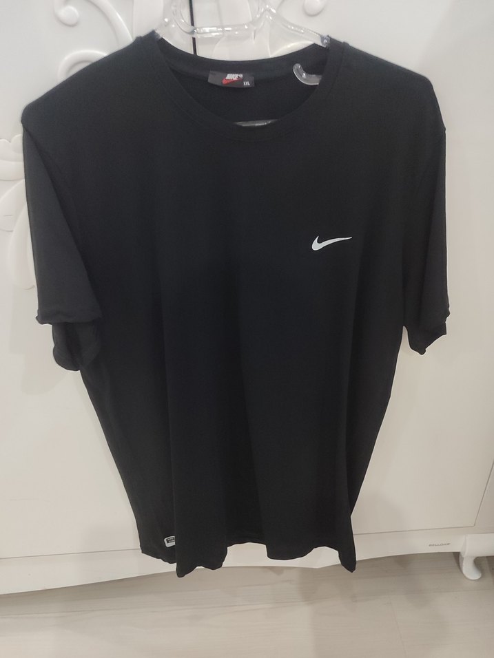 Nike marka siyah erkek tişörtü, kısa kollu ve yuvarlak yaka. Sentetik kumaştan, rahat kesim ve sade tasarıma sahip, spor ve günlük kullanıma uygun.