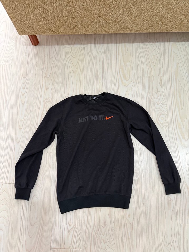 Siyah, uzun kollu, yuvarlak yaka, bol kesim sweatshirt. Yumuşak ve sıcak kumaştan, önünde 'JUST DO IT' baskısı bulunur. Kalıbı biraz dardır.