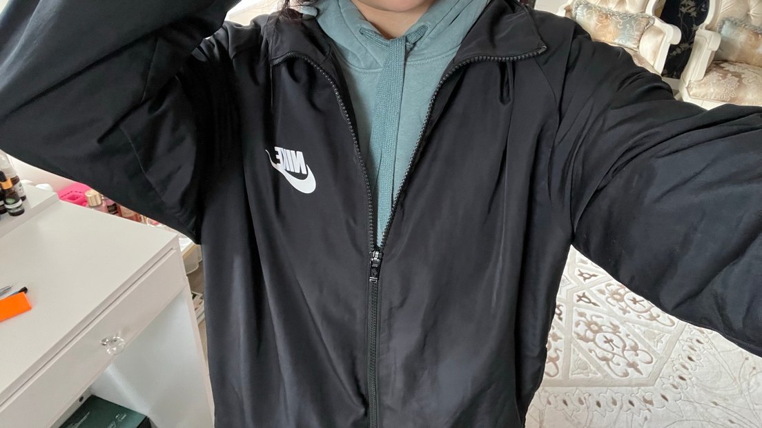 Nike siyah fermuarlı rüzgarlık, yüksek yakalı ve uzun kolludur. Yumuşak ve sıcak kumaştan, normal boyda ve vücuda oturan bir tasarıma sahiptir. orijinal nike ceket