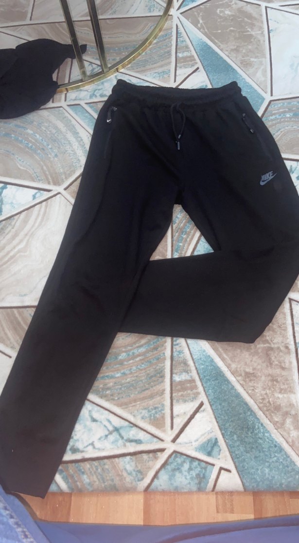 Nike siyah renkte, fermuarlı cepleri olan, normal kesim ve sentetik kumaştan erkek eşofman altı. Günlük kullanım için uygundur.