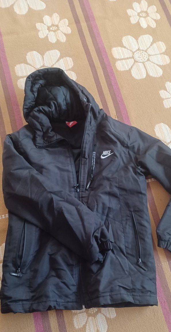 Siyah Nike mont, dar kesim, uzun kollu ve yüksek yakalı. Fermuarlı cepler ve kapama özelliği bulunur, yumuşak ve sıcak kumaştan üretilmiştir. Günlük rahat stil için uygundur. indirim yapabilirim