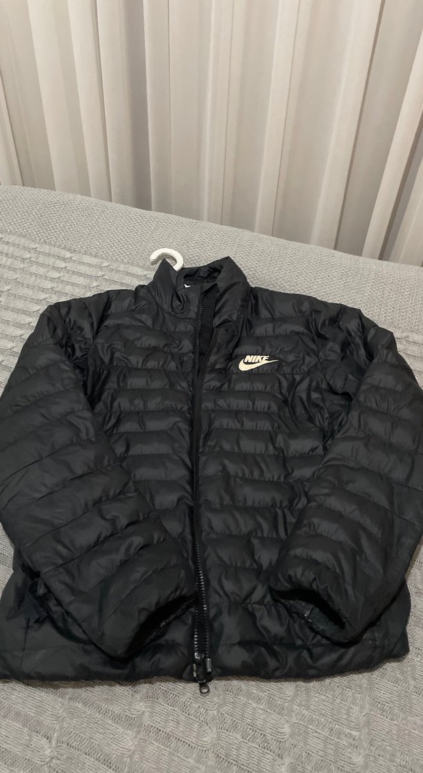 Nike siyah, fermuarlı, uzun kollu, yüksek yakalı, yumuşak ve sıcak dokulu kışlık mont. Günlük kullanıma uygun, sade ve şık tasarım. Orijinal Nike markadır M beden Omuz kısmında ekleme mevcuttur,terzi de yaptırıldı,sökülme olmuştu yama şeklinde kapattırdık Makul üründür