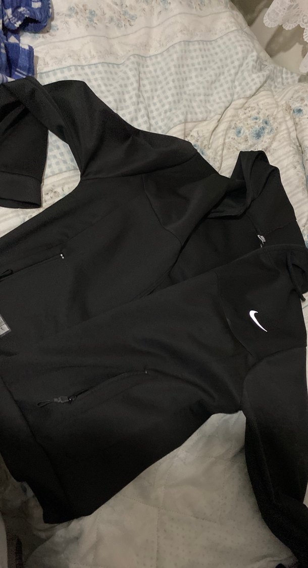 Nike marka siyah erkek sweatshirt, uzun kollu ve fermuarlı. Yumuşak ve sıcak kumaştan, günlük sokak stili için uygun.