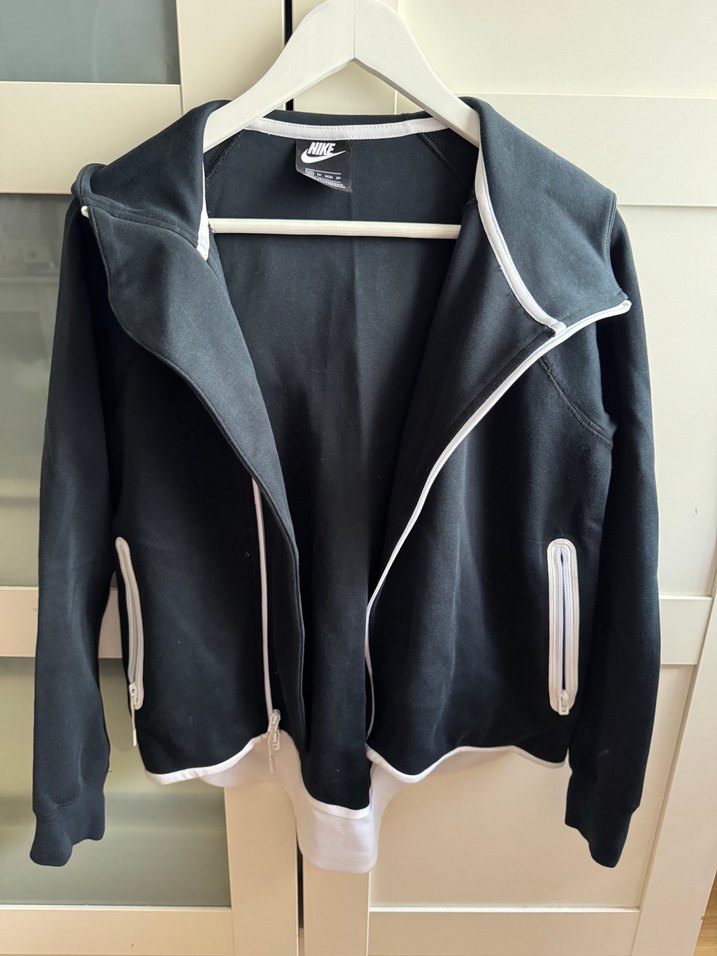 Nike marka, siyah, fermuarlı, yüksek yakalı, uzun kollu, yumuşak ve sıcak kumaştan yapılmış kadın sweatshirt. Günlük kullanıma uygundur.