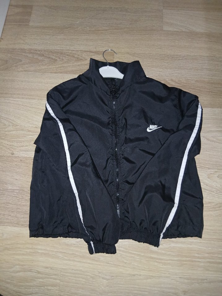 Nike marka siyah renk, fermuarlı, uzun kollu, yüksek yakalı ve bol kesim rüzgarlık. Beyaz şerit detayları spor stilini tamamlar.