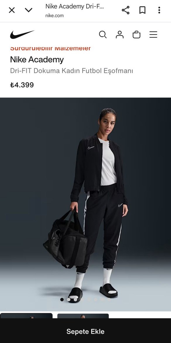 Nike siyah, fermuarlı, yüksek yakalı, uzun kollu, rahat ve sıcak kumaştan yapılmış spor tarzı ceket.