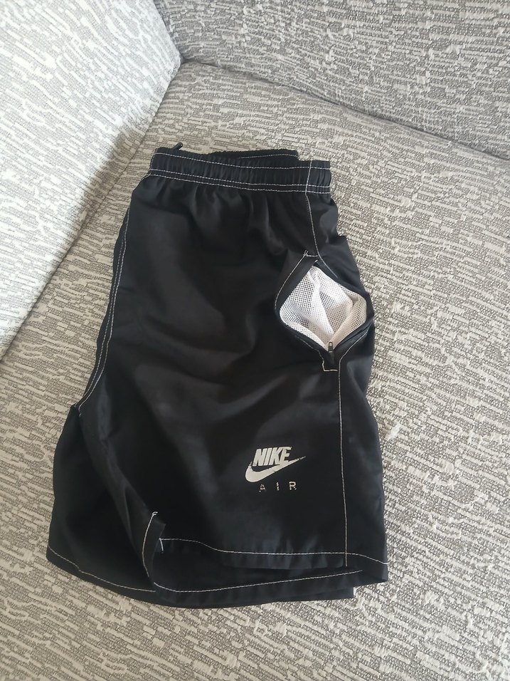 Nike marka siyah, kısa ve dar kesim spor şort, fermuarlı ceplere sahip, sentetik kumaştan üretilmiştir. ıyı durumda