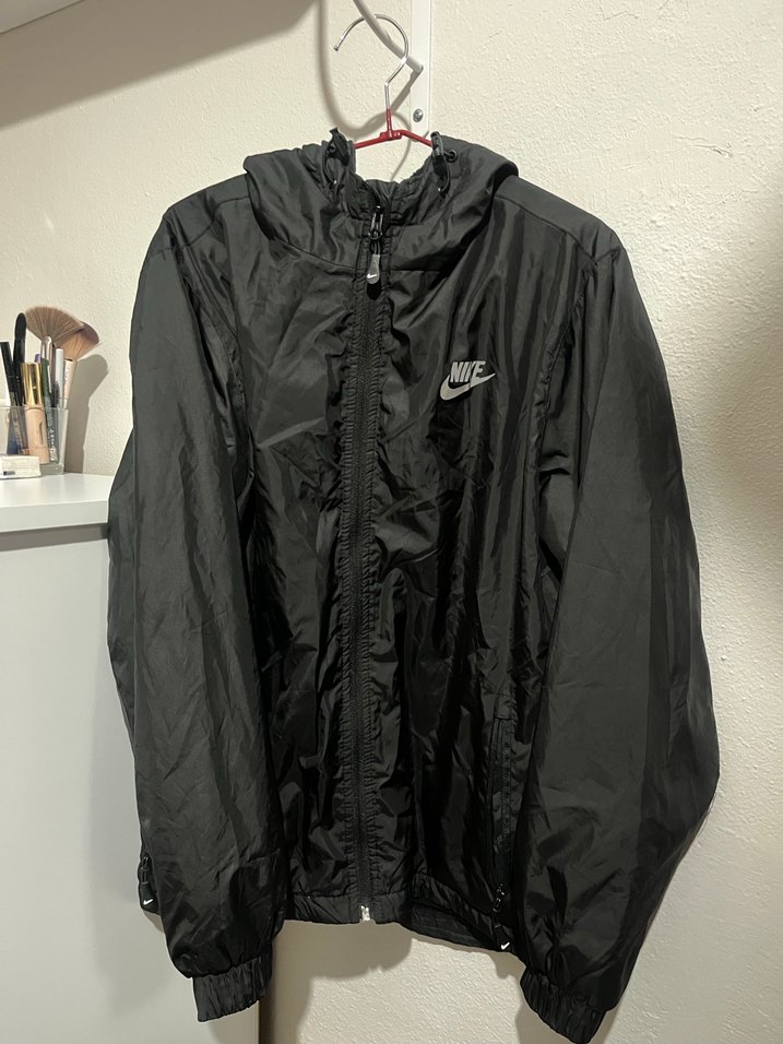 Nike, fermuarlı, yüksek yakalı ve uzun kollu, siyah yağmurluk. Günlük kullanım için uygun. Hediye geldi bir kere giyildi beden olmadı. Herhangi bir kusuru yok.