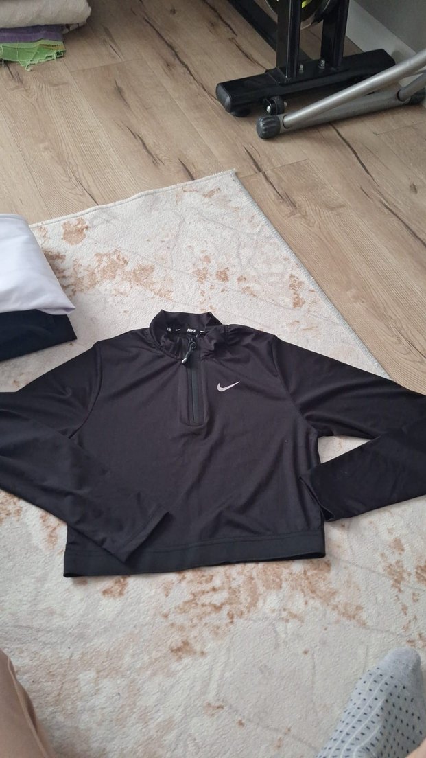 Nike siyah fermuarlı, yarım boğazlı, uzun kollu, ince kesim crop, sentetik kumaştan üretilmiştir. Spor ve günlük kullanıma uygundur.