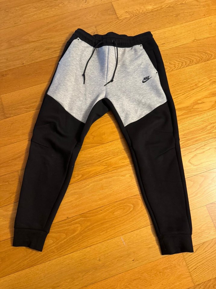 Nike erkek eşofman altı, siyah ve gri renk bloklu, ayarlanabilir bel lastiği ve yan ceplerle rahat kullanım sağlar.