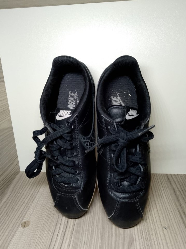 Nike siyah kadın cortez ayakkabısı, dolgu topuklu ve bağcıklı tasarıma sahiptir. Dayanıklı kauçuk malzemeden üretilmiştir.