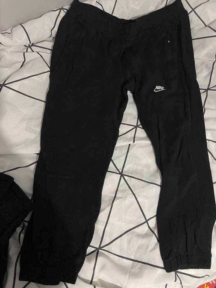 Nike markalı siyah kadın eşofman altı, fermuarlı ve vücuda oturan kesimde, sentetik kumaştan, dış mekan kullanımı için uygun.