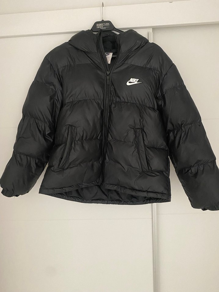 Nike marka siyah kadın kışlık mont, uzun kollu ve kapşonlu. Normal boyda, vücuda oturan kesimiyle günlük kullanıma uygundur. ❄️Kol bölgesinde küçük bir defosu bulunmakta bunuda resimlerde gösterdim zaten giyildiğinde bu defo fark edilmiyor bile. Kalın dolgulu ve soğuklarda sıcacık tutuyor.