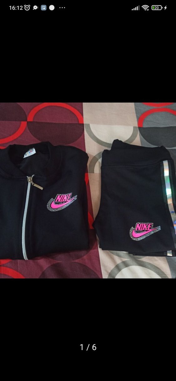 Nike markalı, sentetik kumaştan yapılmış, uzun kollu, fermuarlı, baskılı siyah mini eşofman takımı. Rahat ve şık, günlük kullanım için uygundur.