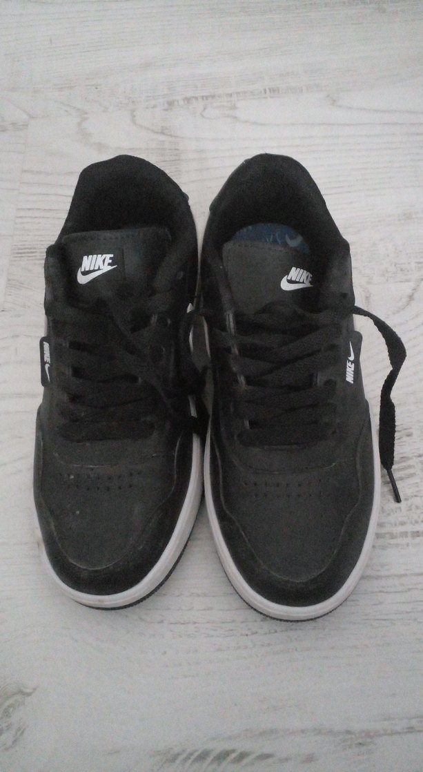 Nike marka siyah kadın spor ayakkabısı, düz kauçuk tabanlı ve velcro detaylıdır. Spor ve sokak tarzı için uygun, sade desensiz tasarıma sahiptir.
