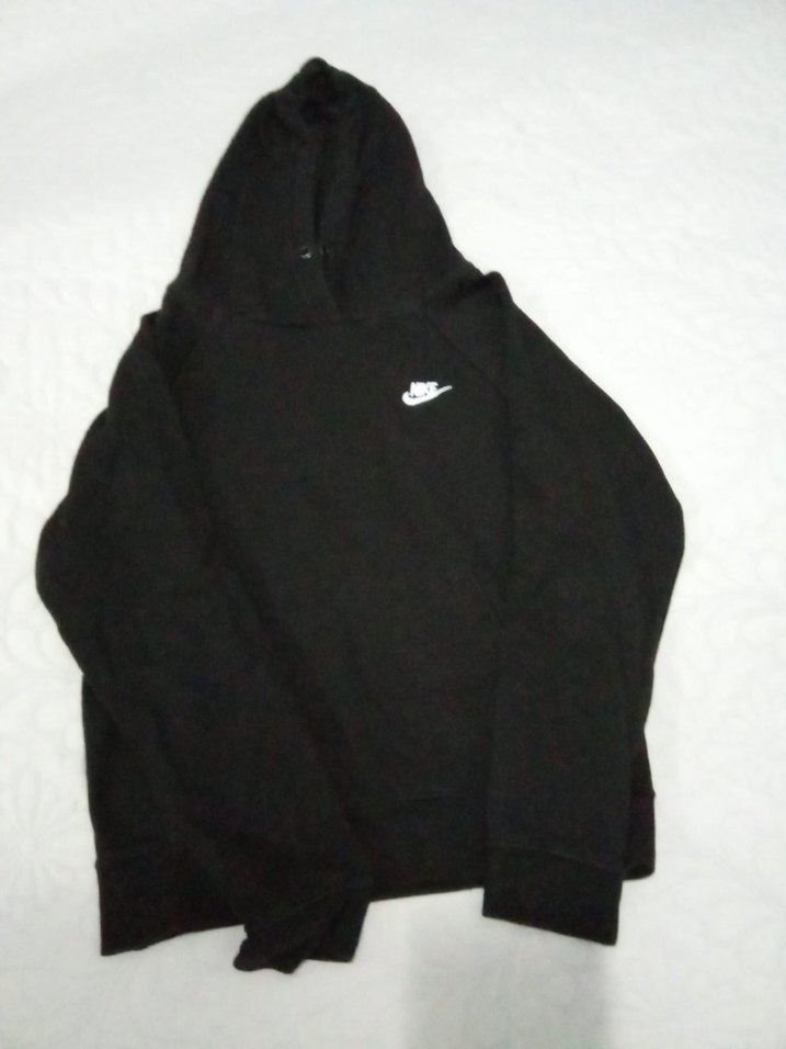 Nike siyah kapüşonlu erkek sweatshirt, uzun kollu ve bol kesim. Yumuşak ve sıcak kumaştan, günlük kullanıma uygun, göğüste küçük logo bulunur.