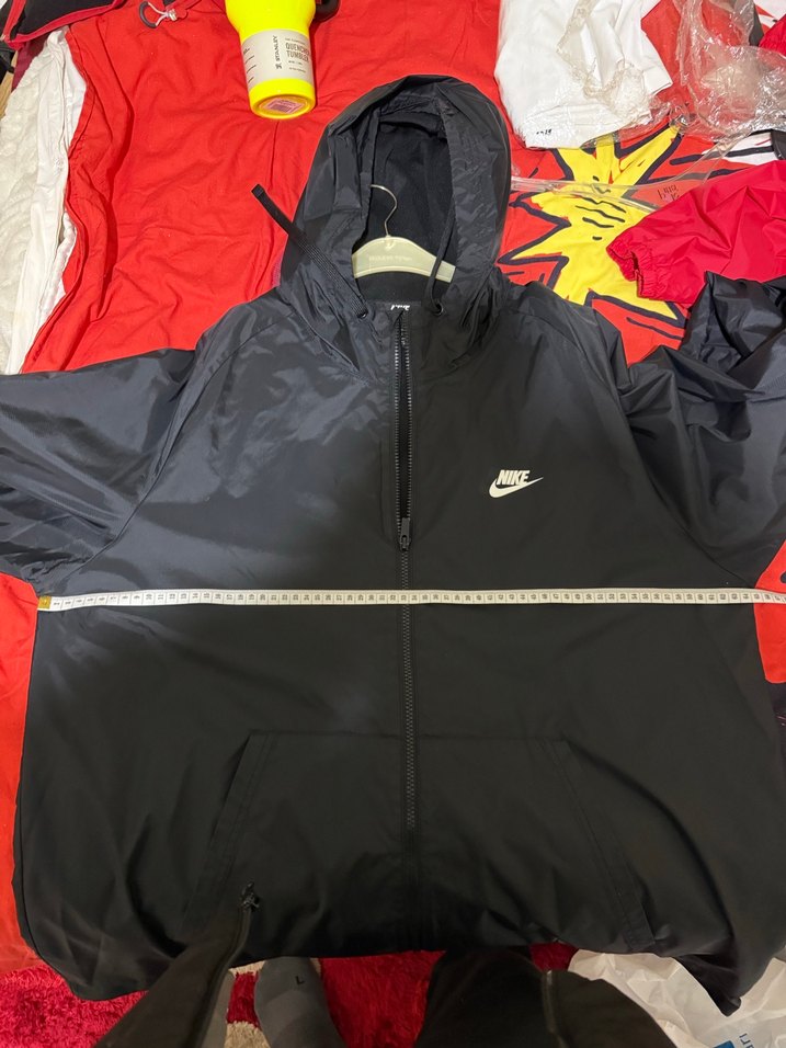 Nike markalı, siyah renkli, sentetik kumaştan yapılmış, fermuarlı ön kapama ve uzun kollu, kapüşonlu ve bisiklet yaka tasarıma sahip, normal boy midi yağmurluk. Dış mekan kullanımı için uygundur. ️diğer ilanlarada bakınız