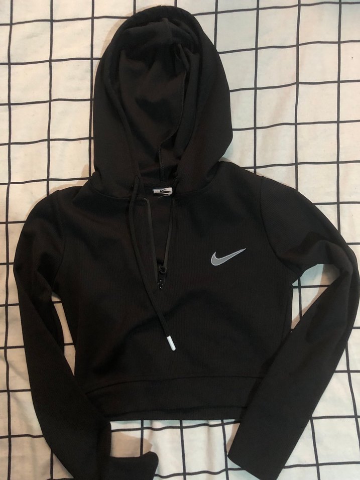 Nike siyah kapüşonlu kadın spor üst, dar kesim, yüksek yakalı ve fermuarlı detaylıdır. Yumuşak ve sıcak kumaştan, uzun kollu ve normal boydadır. Xs s uyumlu