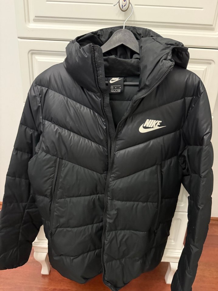 Nike siyah kapüşonlu, fermuarlı, uzun kollu spor mont. Orta boy, fit kesim ve yumuşak, sıcak kumaştan yapılmıştır. Üzerinde Nike logosu ve iç kısmında "NİKE " yazısı bulunur. ️çok az kullanılmıştır .özenle kargo yapılır .unisex modeldir.