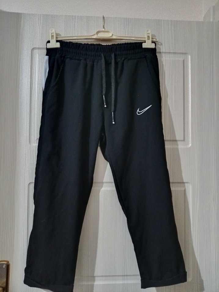 Nike siyah renkte, kemerli ve bol kesim erkek eşofman altı. Sentetik kumaştan üretilmiş, spor ve günlük kullanım için uygun.