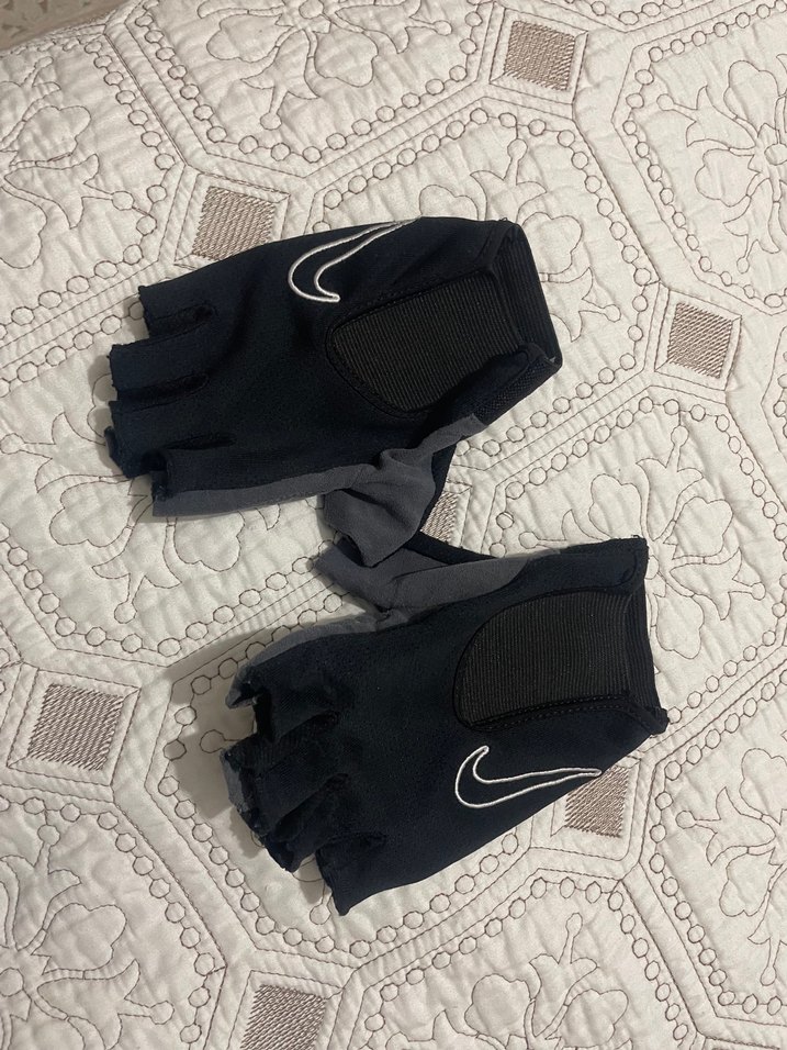 Nike siyah parmakları açık erkek eldivenler, nefes alabilir kumaş ve sade, desensiz tasarımla sokak modasına uygun.