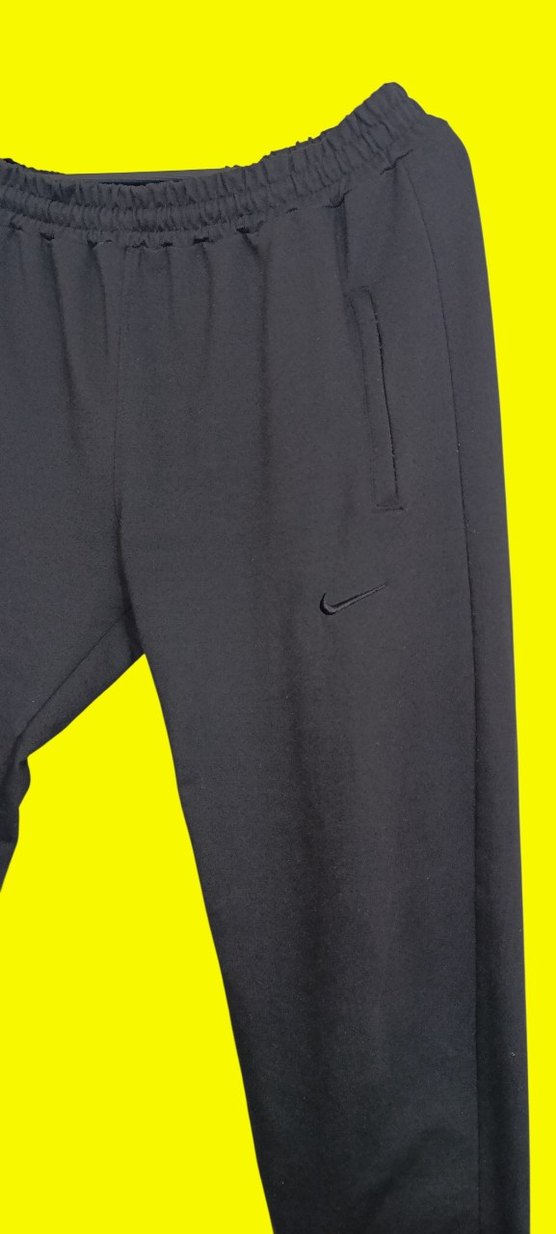 Nike siyah, rahat kesim, yırtmaç detaylı erkek eşofman altı. Pürüzsüz sentetik kumaştan, spor ve günlük kullanım için uygun. ♂️