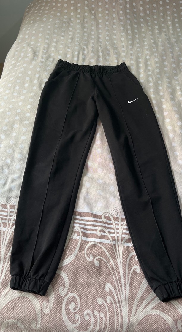 Nike marka siyah, bol kesim ve elastik bel bantlı kadın eşofmanı. Yumuşak ve sıcak kumaştan günlük rahatlık sağlar.