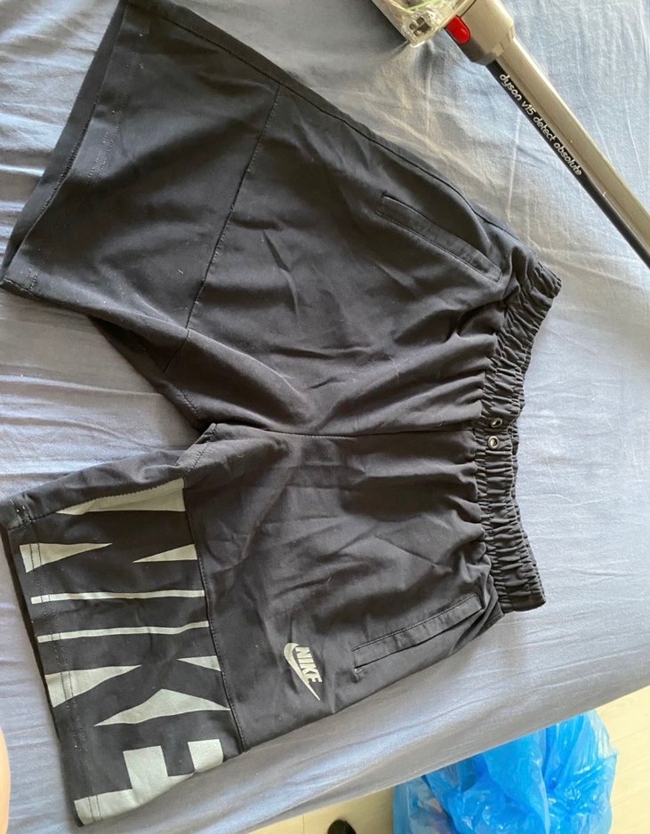 Nike markalı, siyah renkte, rahat kesim ve kısa boyda erkek şort. Bel kısmı lastikli ve kemerli, nefes alabilen keten kumaştan üretilmiştir.