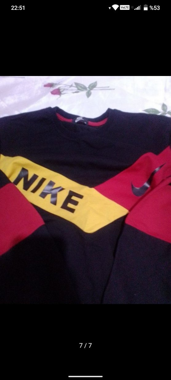 Nike marka, uzun kollu, yuvarlak yaka, siyah, kırmızı ve sarı renk bloklu baskılı erkek sweatshirt. Örgü görünümlü sentetik kumaştan üretilmiştir. Günlük kullanım için uygundur. marka temsilidir, orjinal değil
