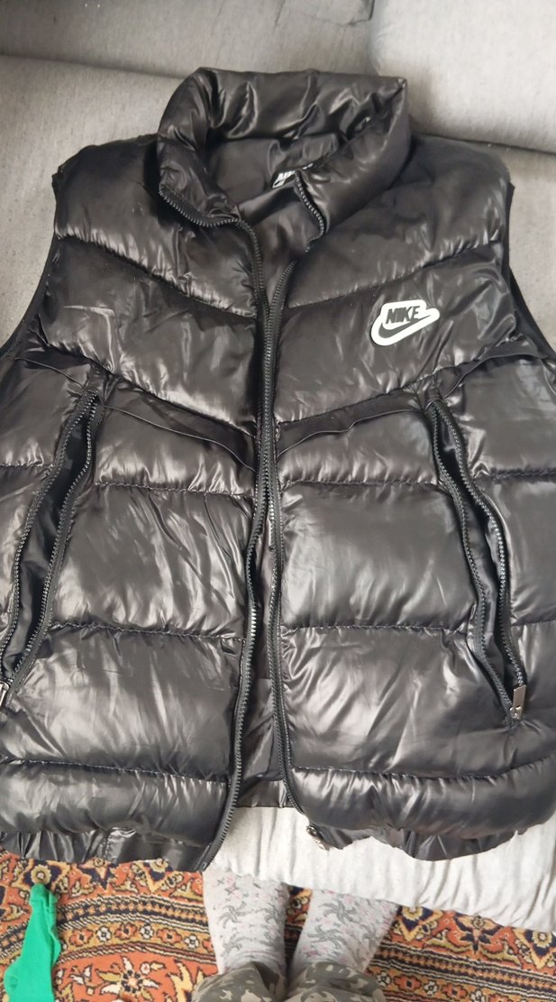 Sıfır ayarındadır Nike marka siyah şişme yelek, yüksek yakalı ve fermuarlı ceplidir. Spor ve şık bir görünüm sunar.