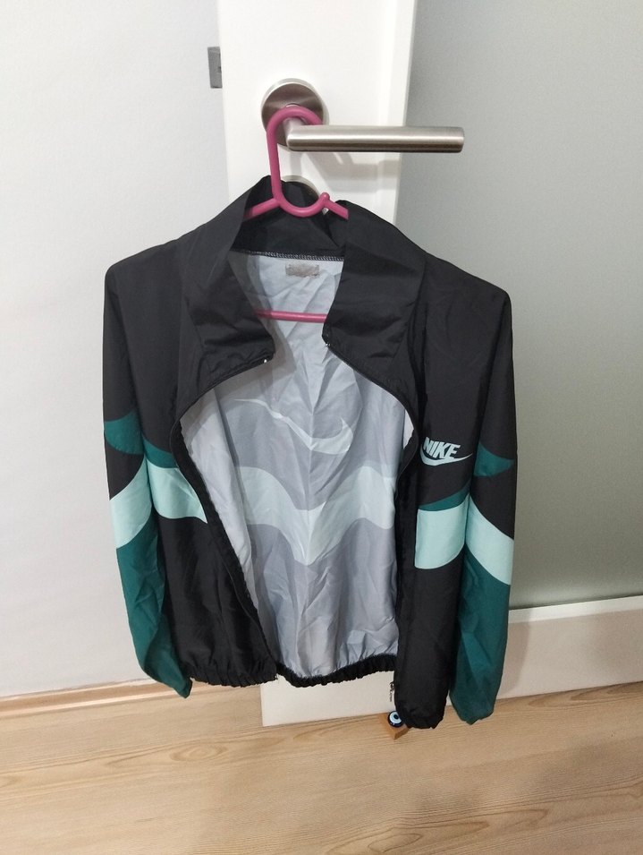 Nike markalı, uzun kollu, yüksek yakalı, fermuarlı siyah erkek rüzgarlık. Spor ve günlük kullanıma uygun, şık ve rahat bir model.