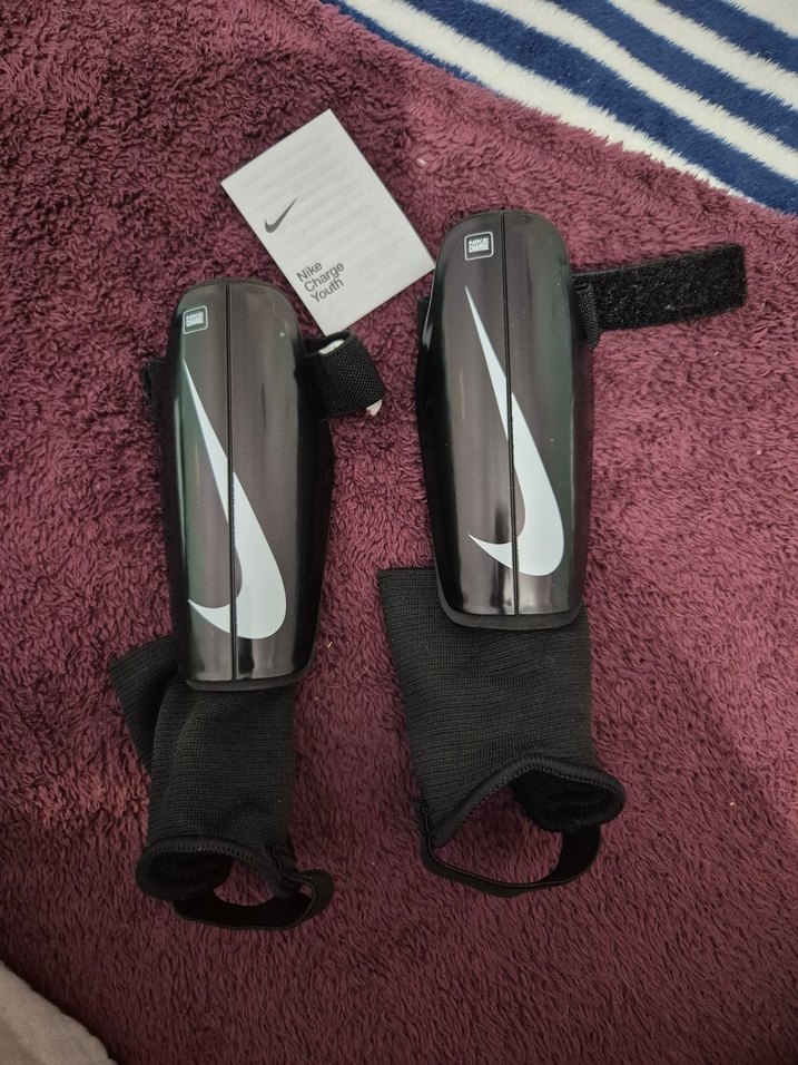 Nike siyah street wear tarzı, baskılı ve süet malzemeli dizlikler. Velcro kayışlarla sabitlenir, koruma ve athleisure tarzını birleştirir. ️