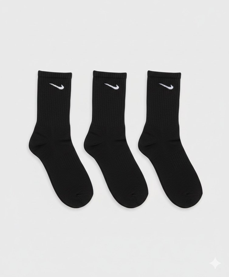Nike marka, siyah renkli, uzun boy erkek çoraplarından oluşan 3'lü set. İnce ve vücuda oturan yapısıyla rahat kullanım sağlar. Beyaz Nike logosu bulunur.