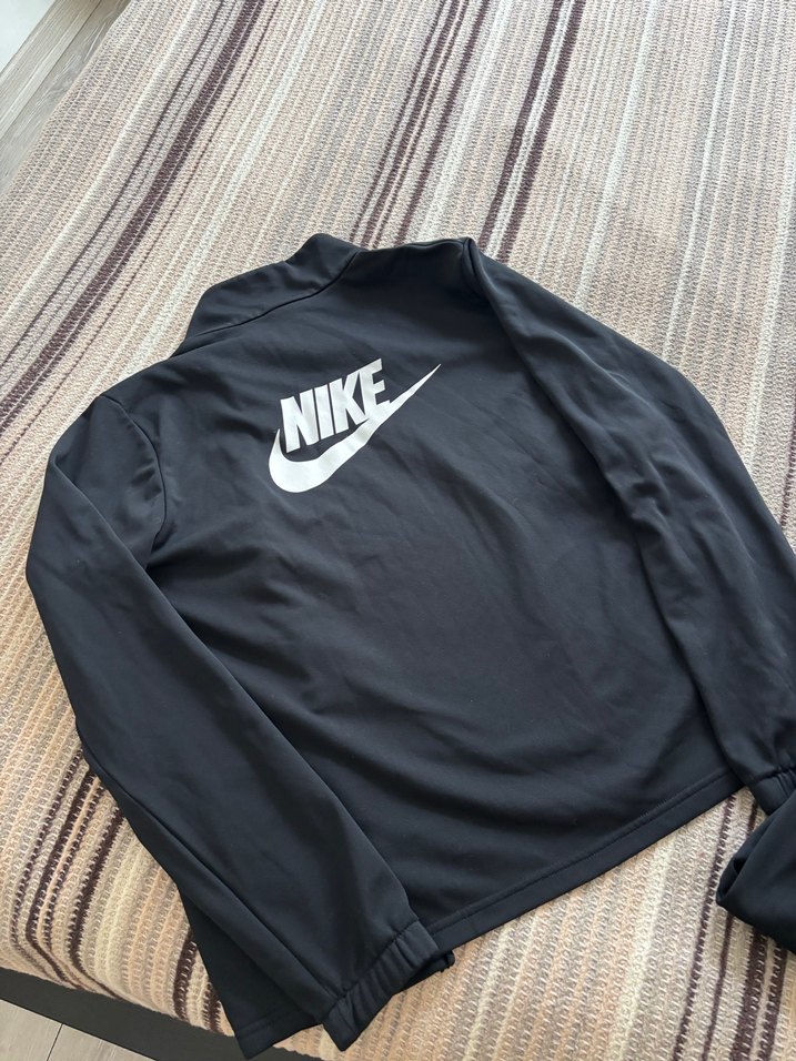Nike siyah uzun kollu sweatshirt, yüksek yakalı ve dar kesimli, sentetik kumaştan, fermuarlı detaylı, spor ve sokak stili için uygun.
