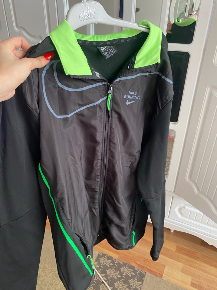 Nike marka, uzun kollu ve fermuarlı, normal midi boyunda siyah yeşil erkek spor rüzgarlık. Yumuşak fleece kumaştan, sportif ve trend günlük giyim için uygundur. ♂️
