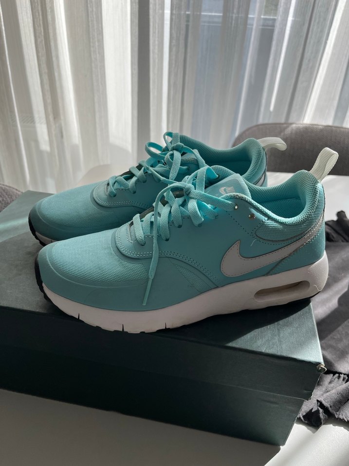 Turkuaz renkli, bağcıklı ve yüksek tabanlı kauçuk malzemeden üretilmiş, desen içermeyen kadın spor ayakkabısı. Tek bir deformasyonu yoktur çok iyi durumda 38 numara