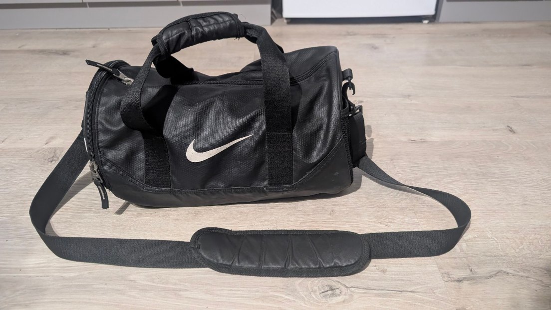 Nike markalı siyah erkek spor çantası, tokalı askı ve desensiz tasarıma sahip Su geçirmez Waterproof