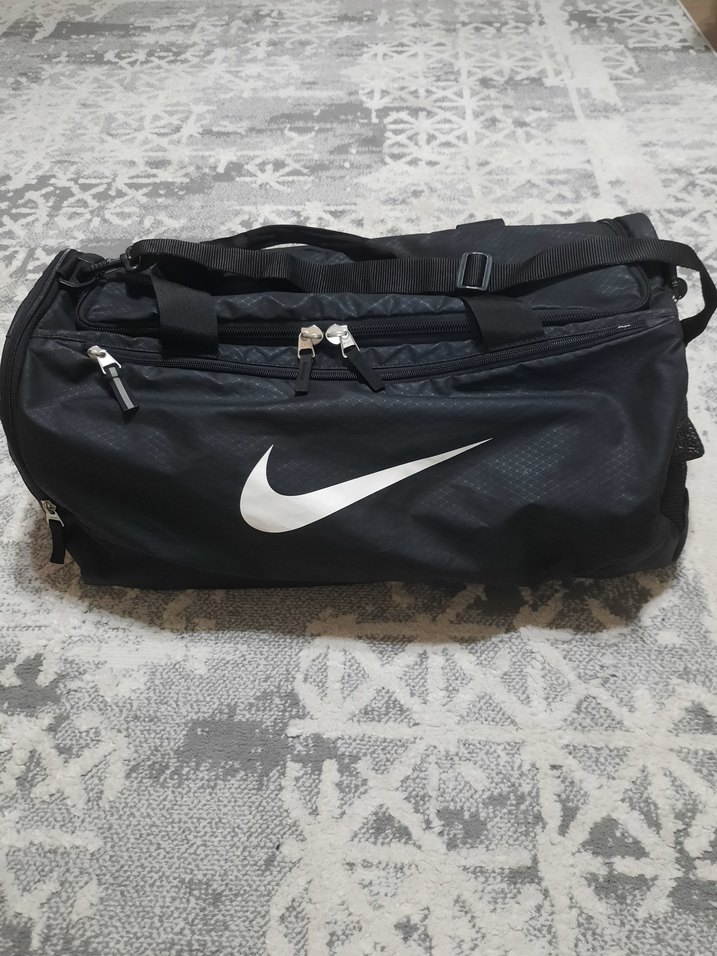 Nike marka siyah spor çantası, fermuarlı bölmeleri ve ayarlanabilir omuz askısıyla sokak stili için uygundur. Sorunu yok