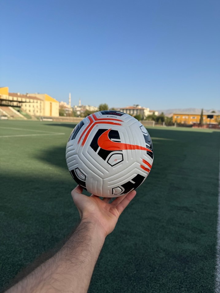 Beyaz tabanlı renkli tasarıma sahip, kauçuk malzemeden üretilmiş erkek futbol topu. Spor ve sokak stiline uygun, cırt cırt detaylı. ⚽