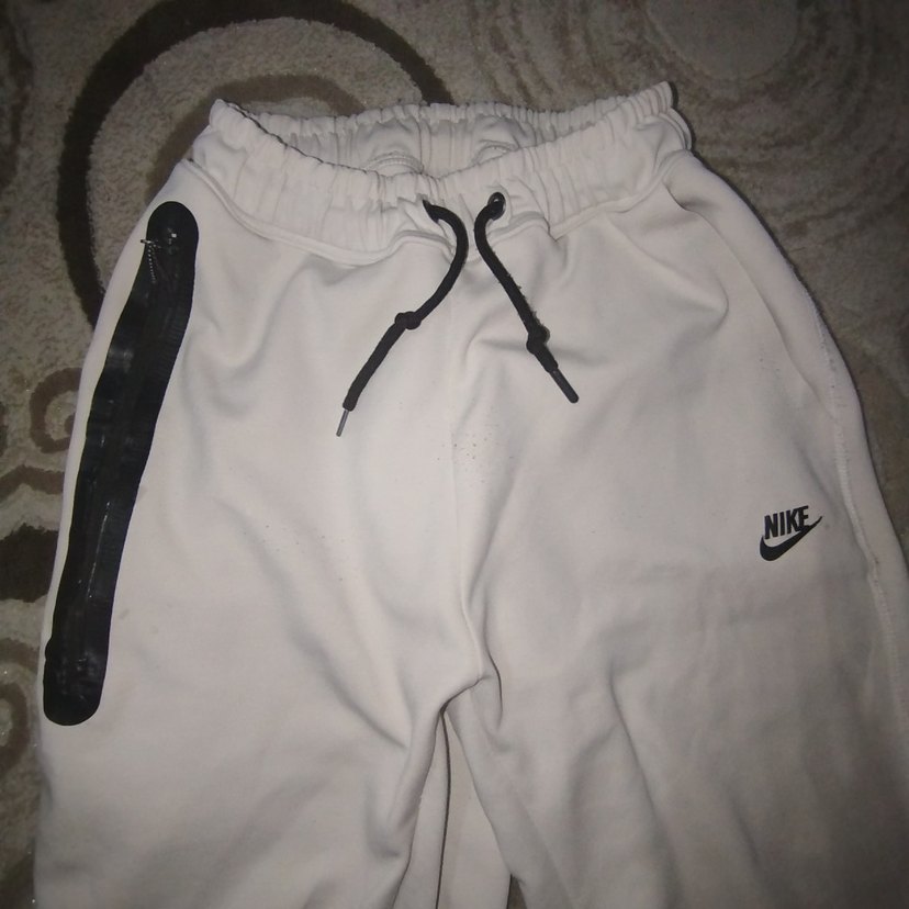 Nike beyaz eşofman altı, siyah bağcık ve fermuarlı cep detayları ile rahat elastik bel bandına sahiptir. ♂️