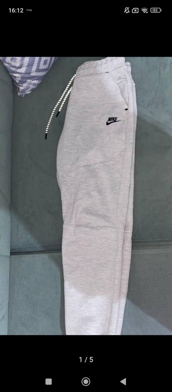 Nike marka, bağcıklı bel ve yumuşak kumaşlı açık gri eşofman altı. Rahat kullanım için uygundur.