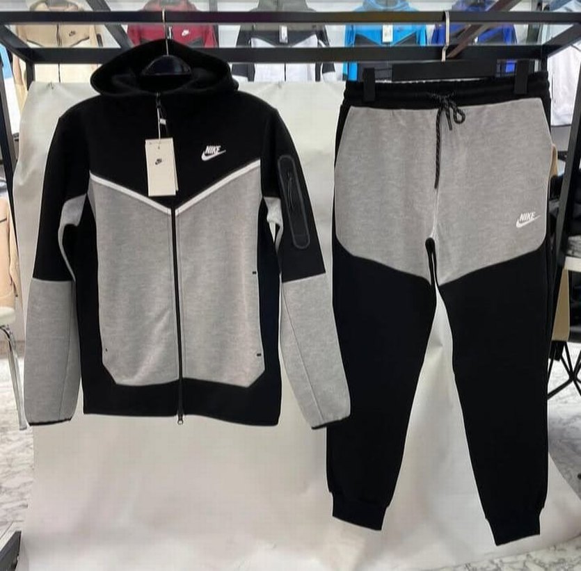 Nike marka, gri ve siyah renkli, fermuarlı kapüşonlu sweatshirt ve rahat kesim eşofman altından oluşan erkek takim Yumuşak ve sıcak kumaştan üretilmiştir.
