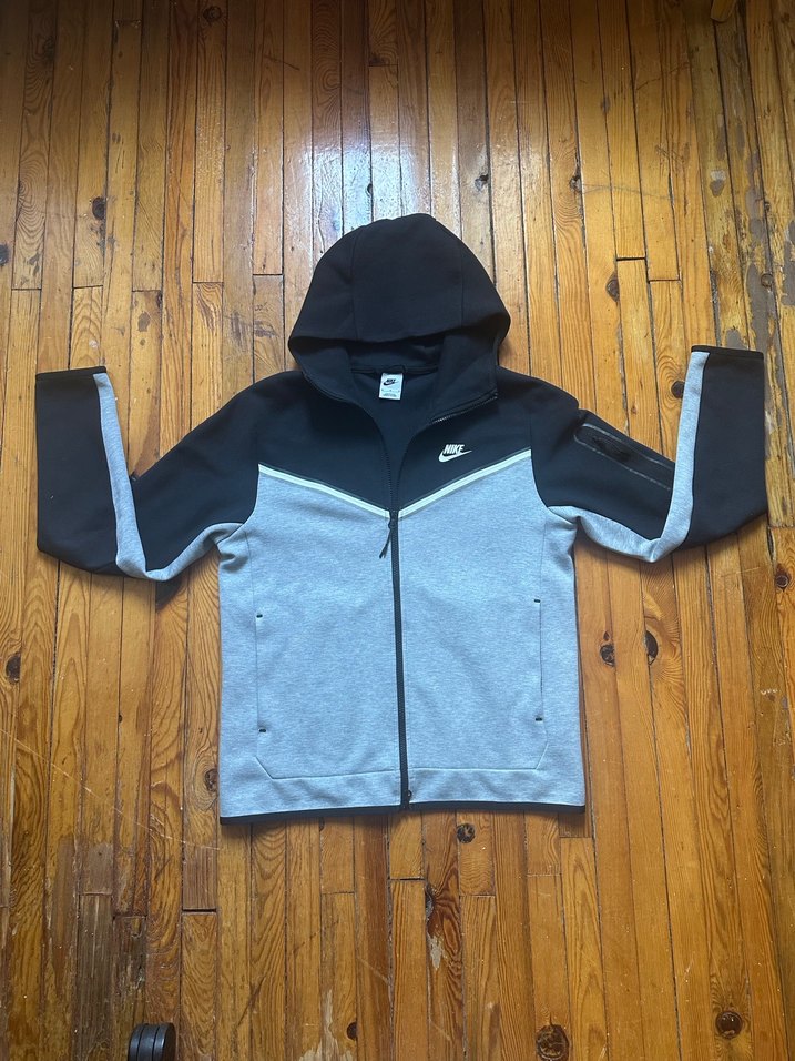 Nike marka, gri ve siyah renkte kapüşonlu erkek sweatshirt. Fermuarlı, uzun kollu ve yumuşak polar kumaştan üretilmiştir. Spor ve günlük kullanıma uygundur. ♂️