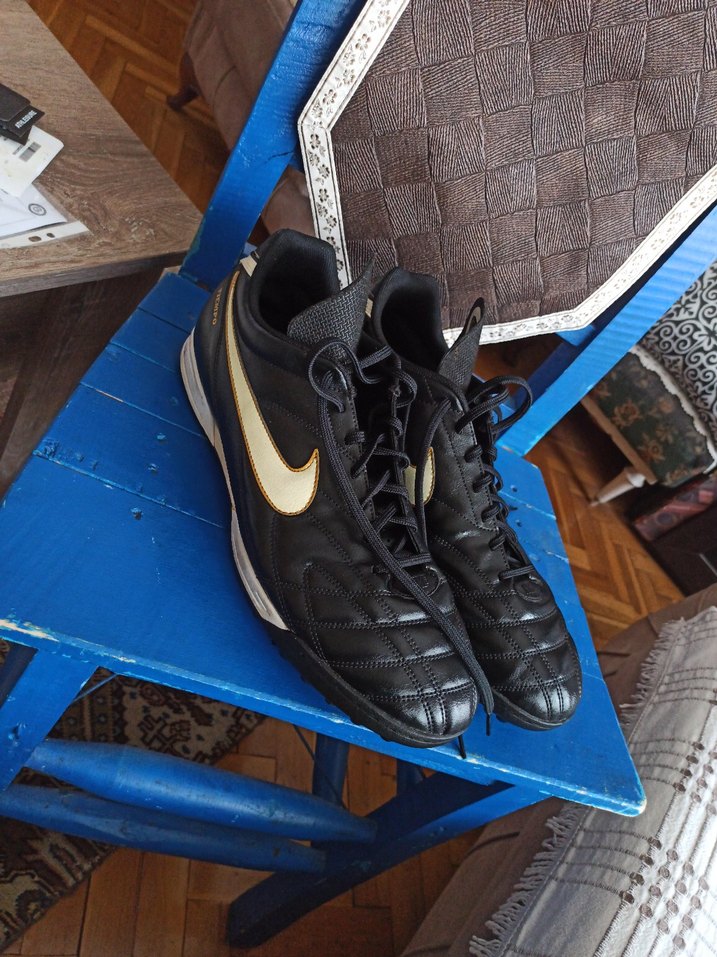 Spor ve sokak stili için siyah, bağcıklı erkek futbol ayakkabısı. Kauçuk malzemeden üretilmiş, desen içermeyen şık tasarım. ⚽ Orjinal Nike Tiempo 49.5 numara 33 cm .