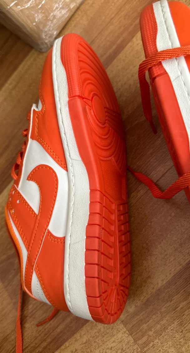 Nike markalı, turuncu ve beyaz renkli bağcıklı spor ayakkabı. kauçuk tabanlı, sportif sokak stili için uygun.