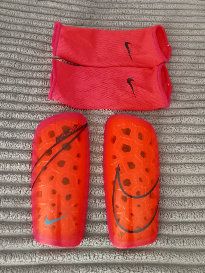 Nike turuncu mor diz boyu koruyucu set, uyumlu kırmızı kılıflarla rahatlık ve koruma sağlar. Renkli ve midi boy tasarım ⚽