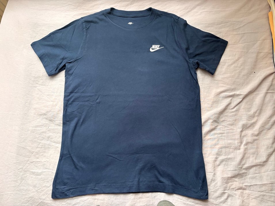 Nike marka xl çocuk beden fakat S,M beden kadınlarda tercih edebilir, yuvarlak yaka ve kısa kollu. Koyu mavi, ipeksi dokuda, bol kesim. Spor ve sokak tarzına uygun, sade ve şık.